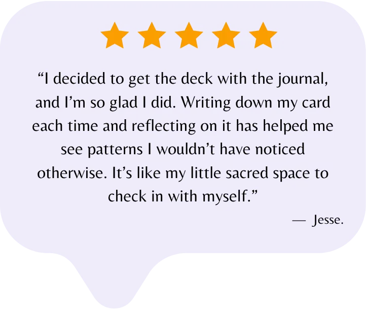 If you purchase our Divine Ritual bundle, you’ll receive a beautifully designed digital journal to jot down your card, your feelings, and the guided reflective questions to help you deepen your connection to the message.